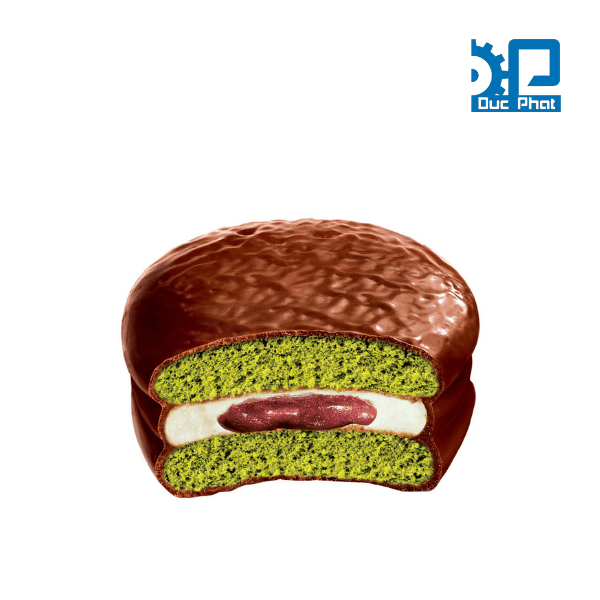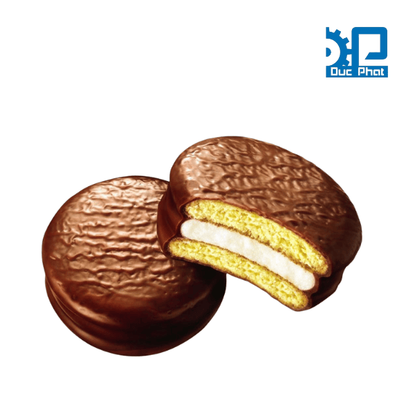 Bánh Chocopie là một loại bánh ngọt nổi tiếng được rất nhiều người yêu thích đặc biệt phổ biến tại Việt Nam. Đây là dạng bánh xốp mềm, gồm hai lớp bánh bông lan kẹp nhân marshmallow dẻo dai ở giữa, sau đó được phủ một lớp chocolate bên ngoài. Độ mềm mịn của bánh, vị béo của chocolate, tạo nên một món ăn vặt hấp dẫn cho nhiều đối tượng, từ trẻ em đến người lớn. Để tối ưu hóa, Chocopie được sản xuất công nghiệp với dây chuyền hiện đại, đảm bảo độ đồng đều về hình dạng, hương vị và an toàn vệ sinh thực phẩm.