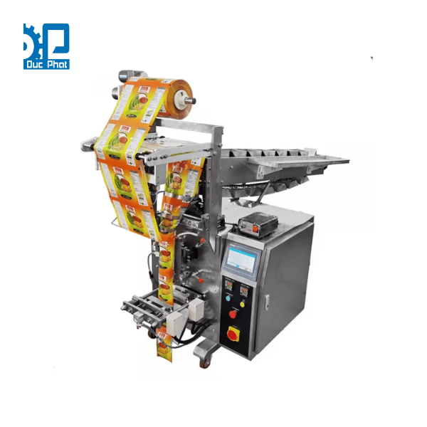 Máy đóng gói bò khô túi bụng băng tải gầu đóng bò khô và các loại thực phẩm, đồ ăn vặt như snack, bim bim, khô gà, que tẩm gia vị, trà hoa vào túi bụng. Máy cấp liệu thông qua cơ chế băng tải gầu hoặc băng tải bát và có khả năng tự tạo túi từ cuộn màng. Sau đây là hình ảnh và thông số kỹ thuật của máy.