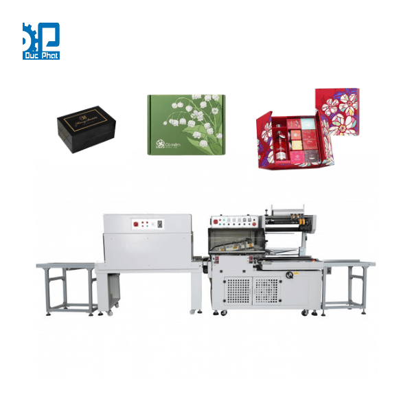 Máy đóng gói co màng hộp quà là hệ thống bao gồm máy đóng gói và buồng co màng, có chức năng đóng gói màng co cho các loại hộp quà tết, hộp quà đựng mỹ phẩm, hộp quà tặng các dịp lễ,… Máy đóng gói sẽ tạo túi bọc kín sản phẩm, sau đó buồng co màng sẽ khiến màng túi co lại nhanh chóng, bao sát thành sản phẩm, giúp sản phẩm bóng bẩy và đẹp mắt.